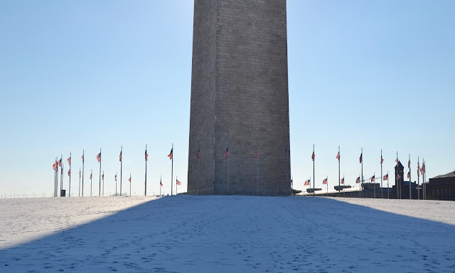 The next morning, I walked CJ over to the NEH headquarters a few blocks from our hotel and then, braving the elements, I entered the Mall and walked west toward the Washington Monument.
